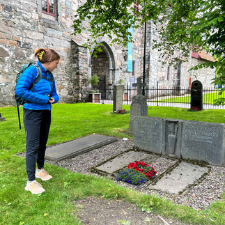 *Paragraph content warning: Nazi crimes during WWII* Around the back of the fortress (near the bathrooms) we find a small monument commemorating the members of the Norwegian resistance who were shot and killed here. The bases of four wooden posts can be seen peaking out of the grass near one of the fortress walls. Before coming here neither Hannah nor I knew that Norway was occupied by Nazis during World War II, but marks of their presence remain to this day. I was curious about Norway’s occupation and discovered on Google that the Germans actually viewed Norwegians as racially superior to themselves and pursued a positive relationship with the country through propaganda rather than their strategy of mass extinction in other regions. Hitler actually loved Norway so much that plans were created to build a new German city right next to Trondheim to promote his ideal lifestyle and “racial pure” community. It is eerie to stand right in the middle of such a gruesome scene knowing you are only separated by those atrocities by time. If you want to learn more, there is a brief overview on Nazi Norway here: https://time.com/5885434/nazi-norway-history/.